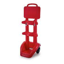 Bluscaddy met twee brandblussers, deze Bluscaddy is te gebruiken voor verschillende toepassingen, dit mede door het lichte gewicht en zeer makkelijk verrijdbaar daar de wielen er onder, ideaal voor tijdelijke toepassingen en voor binnen en buiten gebruik, als extra kan er een verband koffer er worden gemonteerd.