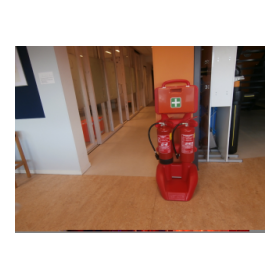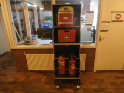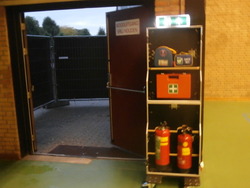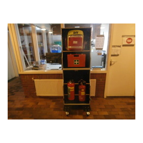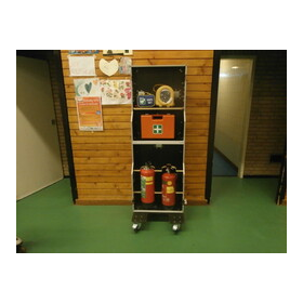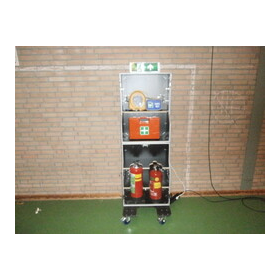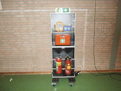 Flightecase met twee brandblussers en ehbo koffer en AED te huur